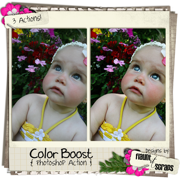 3 Actions. 2 Color Boosting & Enhancing Actions & 1 Eye Brights Enhancing Action. These will save you a ton of time and make you photos look gorgeous!!